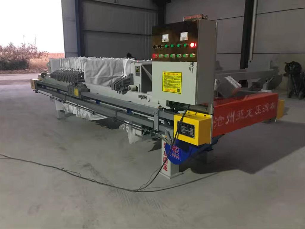 1)板式密閉過(guò)濾機(jī)安裝時(shí),首先檢查混凝土基礎(chǔ)結(jié)構(gòu),要求平整、堅(jiān)固;卸料時(shí)為了便于操作,人行通道要求暢通,板式密閉過(guò)濾機(jī)周?chē)枇魧挾?米左右的通道;機(jī)架應(yīng)進(jìn)行水平及對(duì)角線(xiàn)校正,尾板支腿用地腳螺栓固定,油缸支腿不用固定,并且與地接觸面要求平滑,以_其在受力狀態(tài)下保持定的自由位移。