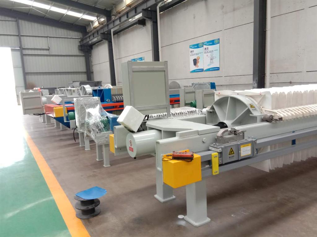 3、采用了雙拉板機(jī)構(gòu),提高了生產(chǎn)效率。該機(jī)采用雙拉板機(jī)構(gòu),一次可以拉開(kāi)兩塊濾板,卸掉兩塊濾餅,清洗4塊濾布,從而減少了輔助作業(yè)時(shí)間,提高了生產(chǎn)效率。拉板機(jī)構(gòu)采用往復(fù)式濾板移動(dòng)器,拉板換向采用定力矩減速機(jī),運(yùn)行平穩(wěn),安全可靠,維修方便。
