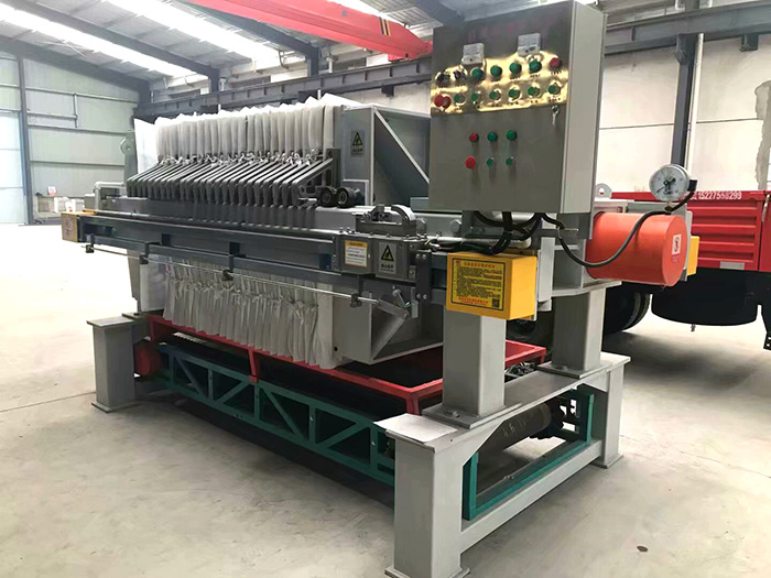 在運(yùn)行過程中,濾漿從濾框上角的孔流入過濾器電樞,濾室壓濾機(jī)的濾液沿濾板上的溝渠向下流動,并從濾板末端的小管排出,而咸的過濾渣留在濾架內(nèi)形成過濾和過濾。"當(dāng)過濾殘?jiān)畛湓诳騼?nèi)時,箱式壓濾機(jī)停止操作,松開濾板和框,取出濾芯,取出箱內(nèi)的濾餅,然后清洗濾框和濾布,再重新安裝濾布。為準(zhǔn)備另一次過濾,清洗,將洗衣盤沖洗成羊皮濾布和蛋糕,聚集在下端的非洗滌板出口流出處。